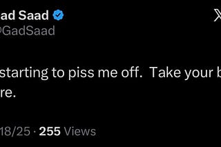 Gad Saad just blocked me for a respectful comment about Islam, so I thought I’d remind you about Saad’s own susceptibility to tyranny
