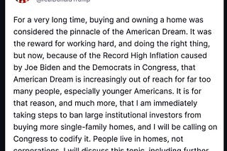 For a policy that sounds bold and populist — see Trump’s tweet above on housing — it’s not actually clear what economic benefit comes from banning…