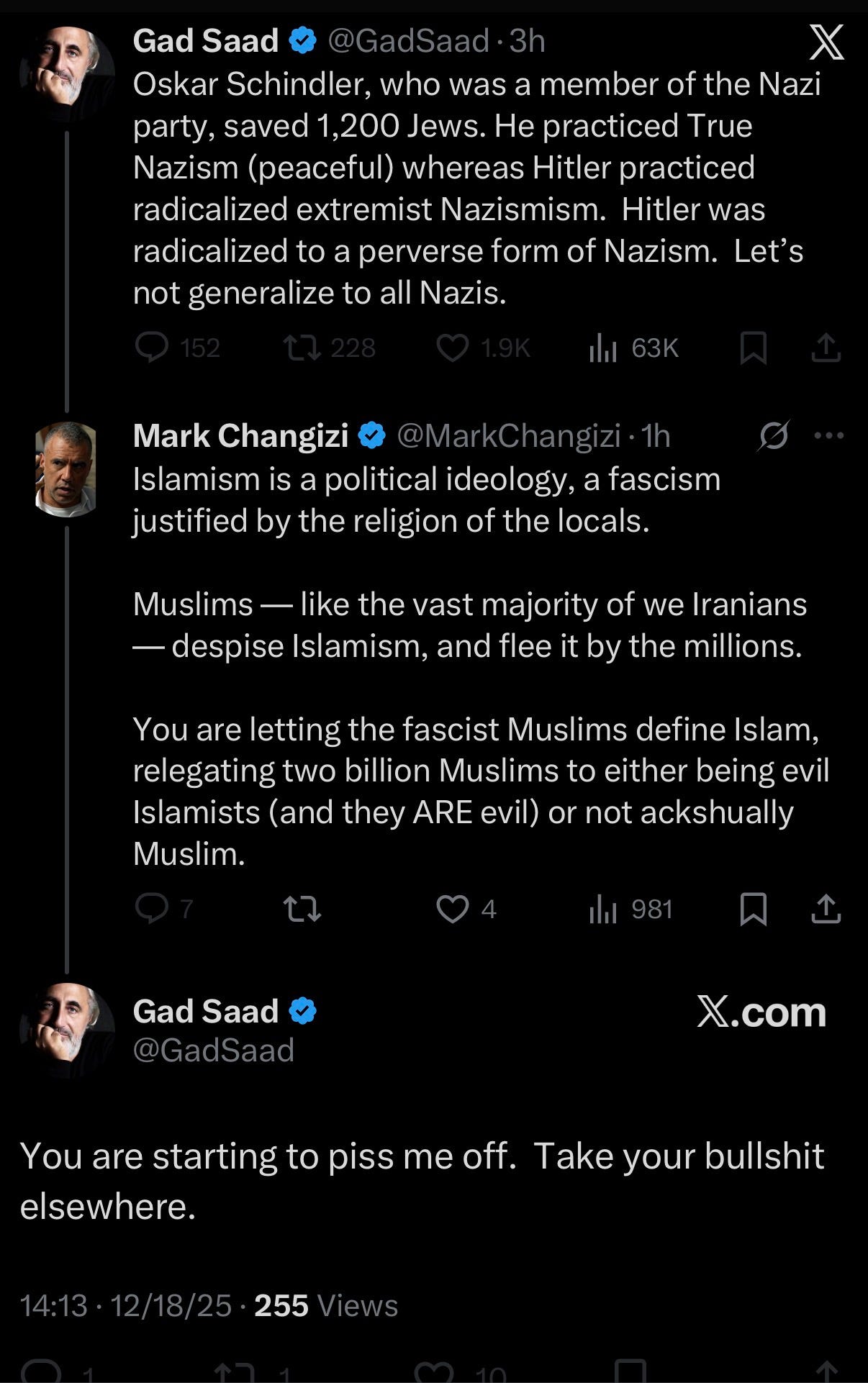 Gad Saad just blocked me for a respectful comment about Islam, so I thought I’d remind you about Saad’s own susceptibility to tyranny