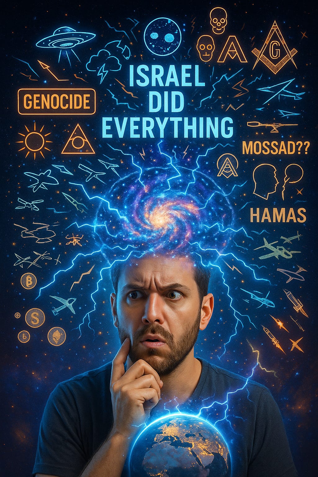 I’m totally not a Jew-hater but Israel is obviously a full-blown terrorist nation committing genocide daily, and I’ve been saying that since 10/7 itself, because Israel actually planned 10/7, fabricated Hamas out of thin air, controls every outcome in Gaza, and is personally responsible for the famine even though Hamas steals the aid, because, well, Israel blocks all aid, obviously, which also proves Islamists are freedom fighters — and if they’re terrorists, then so is Israel, because actually Israel targets civilians during food distribution as official policy, and every civilian casualty is automatically Israel’s fault, none of it has anything to do with Hamas fighting from civilian centers or booby-trapping every second building, since that never happens, because Hamas is a benevolent social club, so whenever Israel takes down a booby-trapped building, that’s really carpet-bombing, and whenever a neighborhood is leveled because Hamas tunneled under every structure, that’s genocide too, and meanwhile Israel controls the U.S. government, Congress, and media, and Mossad was behind 9/11 and ISIS, and Israel harvests organs and targets children, and IDF soldiers shoot civilians for sport while lying constantly, whereas Hamas always tells the truth about everything, including the part where they never ever use hospitals or schools or mosques as military bases, because that’s Israeli propaganda, and Israel refuses ceasefires because Israelis just love killing, and Israel wants Gaza emptied so they can steal land, and Palestinians have zero agency and no moral responsibility for anything they do, and international law applies only to Israel, never to Hamas, and Hamas would immediately stop fighting if Israel stopped defending itself, and anyway, look, Jews protesting Israel proves Israel’s guilt — but none of this, obviously, has anything to do with prejudice.