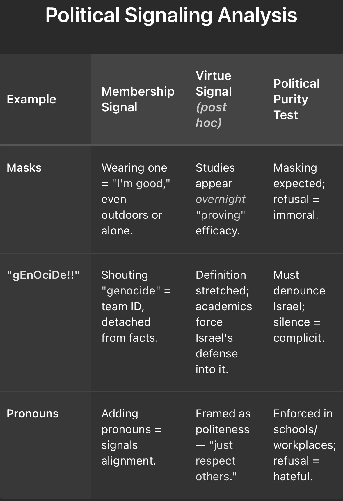 Membership signal to virtue signal to political purity test Mark ChangiziSep 08, 202541ShareThe path is always fromMembership Virtue Purity signal to signal to test