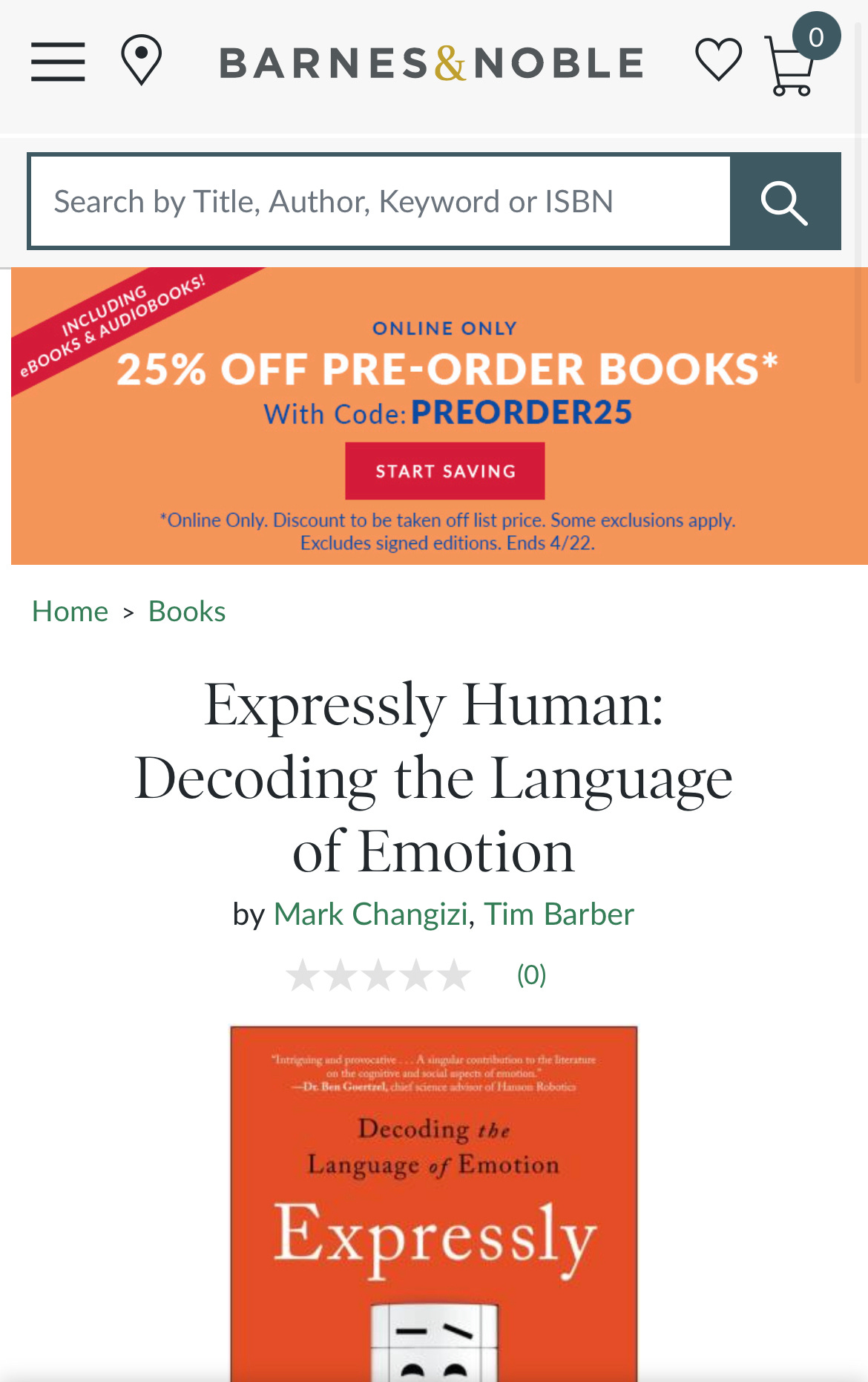 25% off pre-orders of our book, Expressly Human, THIS week only at Barnes & Noble
