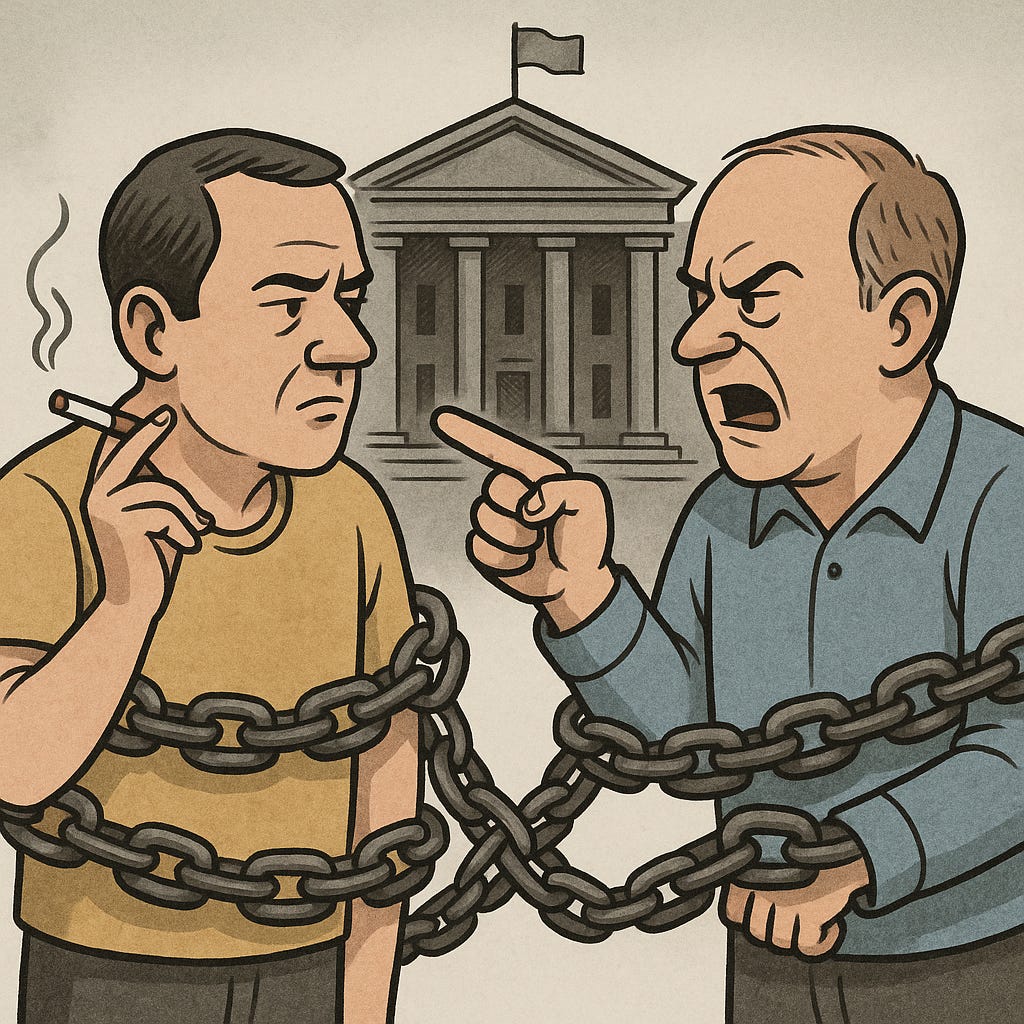 In a statist system, the libertarian non-coercion principle gets twisted. Since the state forces us into collective obligations — for example, paying for one another’s healthcare — your smoking habit suddenly becomes my business. If I stick to a naive application of the non-coercion principle, I can tell myself that trying to stop you from smoking isn’t me aggressing against you but me defending myself against the state’s aggression. In this way, the principle justifies everyone meddling in everyone else’s life. It’s like when an enemy straps babies to the front of its tanks: if I fire, the deaths aren’t on me but on those who engineered the no-win situation. The state is the real culprit, having entangled us in ways that make neighbor-against-neighbor coercion look like self-defense.