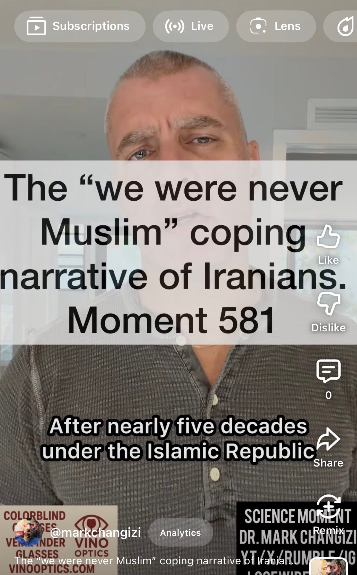 The “we were never Muslim” coping narrative of IraniansMoment 581Mark ChangiziJan 18, 2026Sharehttps://youtube.com/shorts/zMUdomFaDwo?feature=share